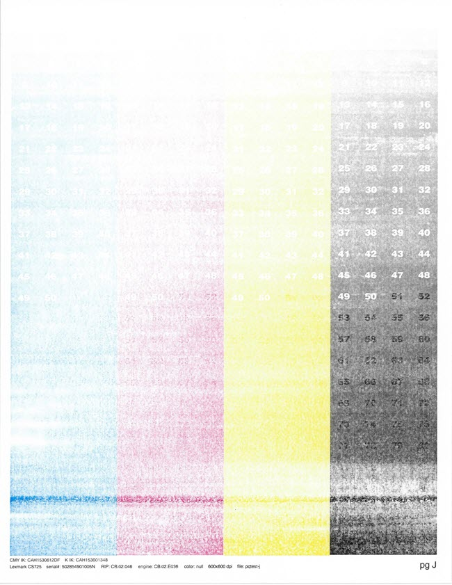 2. Máy in bị mờ từng vùng