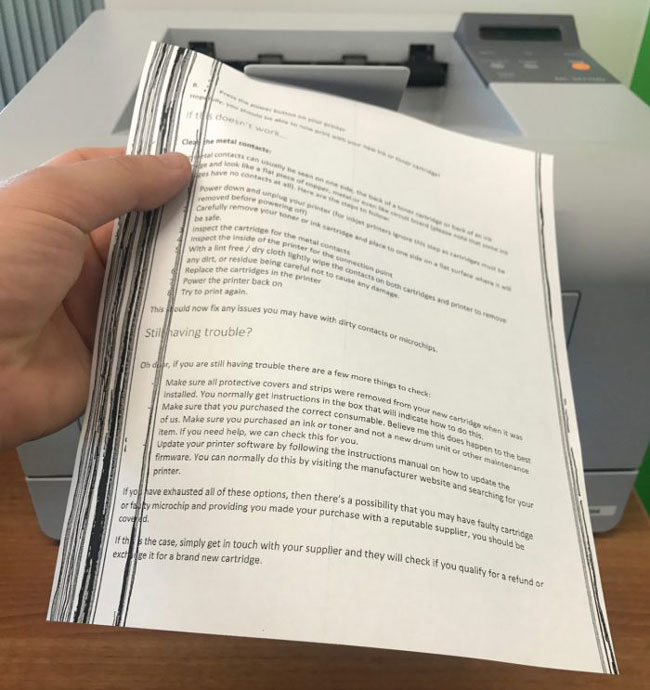 Phân biệt in mờ do hết mực và do lỗi trống in