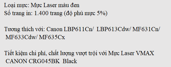 Mực Laser VMAX CANON CRG045BK Black