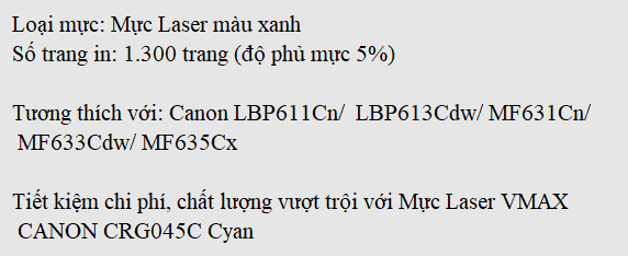 Mực Laser VMAX CANON CRG045C Cyan