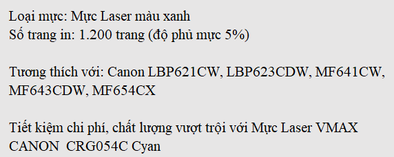 Mực Laser VMAX CANON CRG054C Cyan
