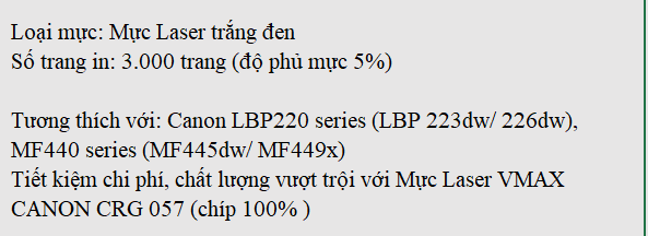 Mực Laser VMAX CANON CRG 057 (có chíp 0%)