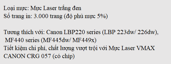 Mực Laser VMAX CANON CRG 057 (có chíp 0%)