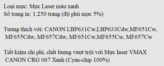 Mực laser VMAX CANON CRG 067 Xanh (Cyan-chíp 100%)