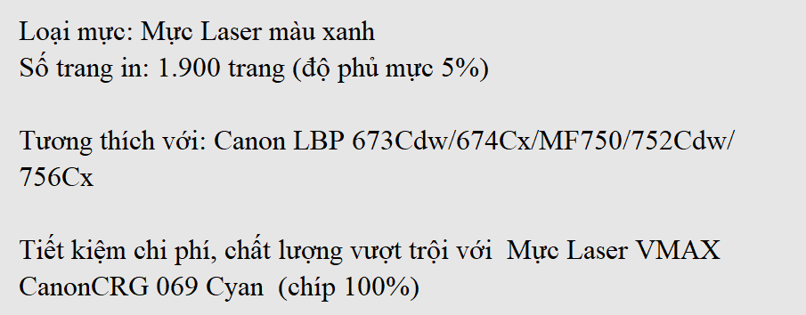 Mực Laser VMAX CANON CRG 069 Xanh (Cyan-chíp 100%)