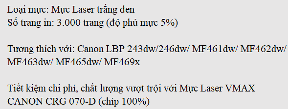 Mực Laser VMAX CANON CRG 070 (chíp 100%)