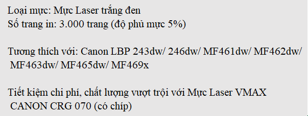 Mực Laser VMAX CANON CRG 070 (có chíp)