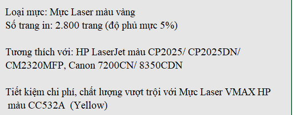 Mực Laser VMAX HP màu CC532A (Yellow)