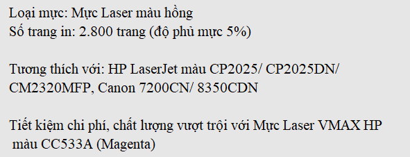 Mực Laser VMAX HP màu CC533A (Magenta)