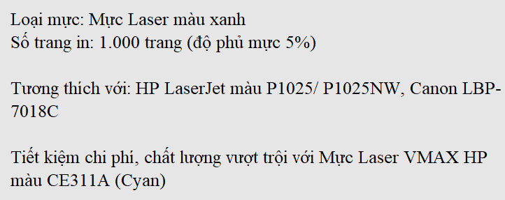 Mực Laser VMAX HP màu CE311A (Cyan)