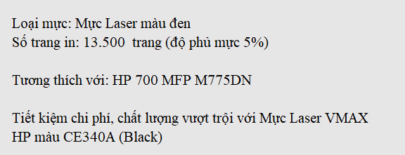 Mực Laser VMAX HP màu CE270A (Black) bền màu, không lem
