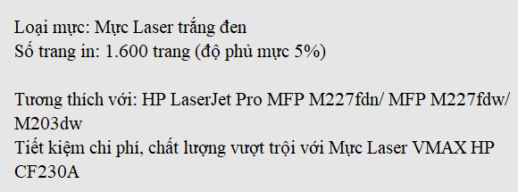 Mực Laser VMAX HP CF230A in ấn tiết kiệm