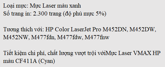 Mực Laser VMAX HP màu CF411A (Cyan)