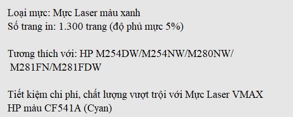 Mực Laser VMAX HP màu CF541A (Cyan)
