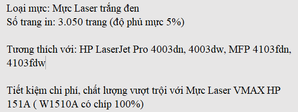 Mực Laser VMAX HP 151A (W1510A có chíp 100%)
