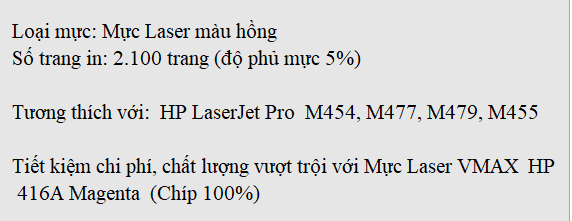 MỰC LASER VMAX HP 416A Magenta ( chíp 100%)