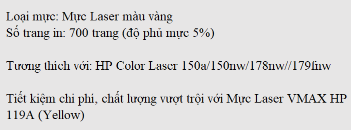 Mực Laser VMAX HP màu 119A (Yellow) chất lượng sắc nét