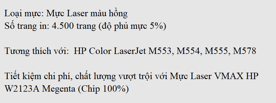 Mực Laser VMAX HP W2123A Megenta - Chíp 100%