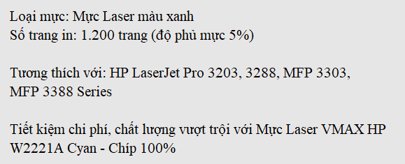 Mực Laser VMAX HP W2221A Cyan - Chíp 100%